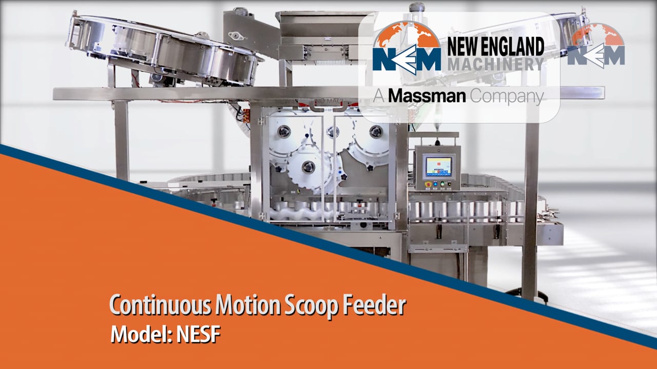 New England Machinery’s Scoop Feeders provide reliable, continuous motion automation for sorting, feeding, and placing scoops into containers. Designed for versatility, efficiency, and control, there are two models of this machine — the NESFD model and the NESFP — each purpose-built to handle specific filling line needs without compromising container cleanliness or product integrity.